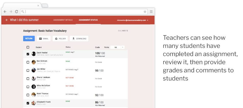 2. Use Classroom to review assignments, give grades and feedback in real time